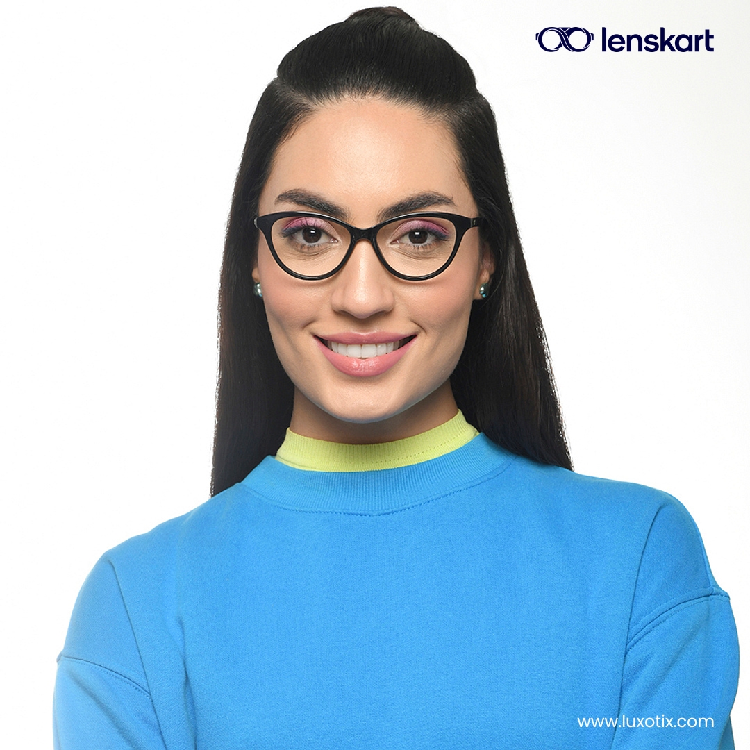 In the box: Lenskart Air Black Cats-Eye Eyeglasses LA E16716 C2 ,Luxurious Protective Box, Wiper.