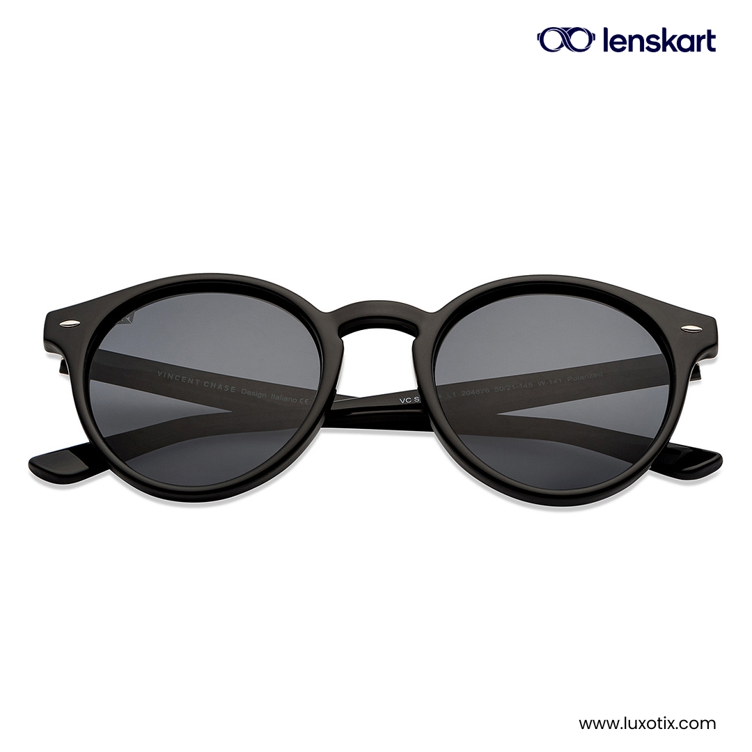 In the box: Vincent Chase Polarized Black Round Sunglasses VC S11744 ,Luxurious Protective Box, Wiper.